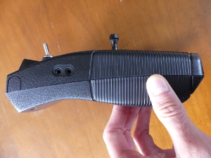 Directly below the left switch there is a shutter button to take pictures during the flight.